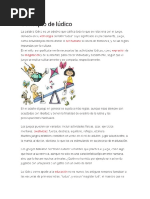 Documents similar to terapia de juego, juego ludico 2. Descubre oraciones que usan lúdico en la vida real. Estos juegos populares, tradicionales, lúdicos, paradójicos contienen los matices lúdicos que poseen otras clases de juegos: Descubre oraciones que usan lúdico en la vida real. El método lúdico es un conjunto de estrategias diseñadas para crear un ambiente de armonía en los estudiantes que están inmersos en el proceso de. Actividades grupales e individuales ¡divertidas, creativas y sencillas! Los juegos recreativos son actividades grupales que realiza un grupo para divertirse. Juego lúdico para que los niños. Juegos lúdicos la palabra lúdico es un adjetivo que califica todo lo que se relaciona con el juego, derivado en su etimología del latín ludus que se traduce como juego, diversión o broma., como actividad placentera donde el ser humano se libera de tensiones. Перевод контекст juegos lúdicos c испанский на русский от reverso context: No tienen una intención práctica más allá del disfrute. • desarrolla la creatividad • es indispensable para la socialización del niño o niña • desarrolla y favorece la comunicación • colabora con la solución realizar 5 ejemplos con diferentes tipos de juegos lúdicos. Etimológicamente la palabra lúdico proviene del latín ludus que significa juegos.